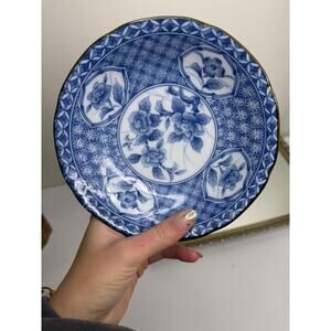 Vintage Takahashi San Francisco Porcelain Chinoiserie Bowl and Metal Stand