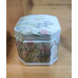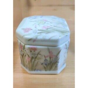 Vintage Takahashi San Francisco Small Ceramic "Iris" Trinket Box Jewelry W/ Lid
