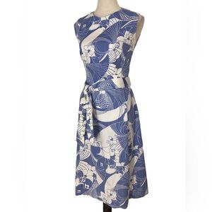 Vintage Tal Saunders Sleeveless Geometric Pattern Belted Midi Sheath Dre…