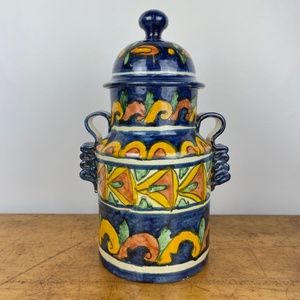 Vintage Talavera Mexican Folk Art Pottery 13” Tall Canister Signed T Ruth Mexico
