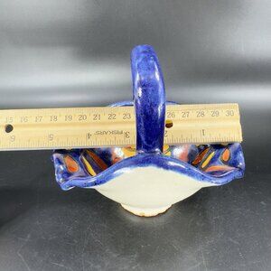 Vintage Talavera Mexico Pottery Hand Made Basket Bowl Hand Painted Signed Bottom