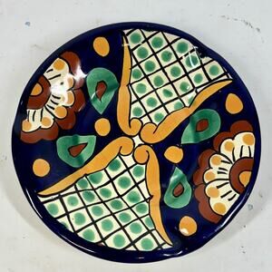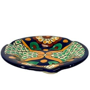 Vintage Talavera Pottery Ashtray 5.5" Mexico Hand Painted Signed Folk Art