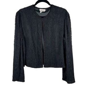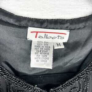 Keywords: vintage beaded sweater, Talbots silk knit, black embellished cardigan, elegant evening wear, luxury vintage fashion, classic formal layering piece, sophisticated holiday sweater, Art Deco-inspired knit, timeless beaded fashion, statement vintage jacket.