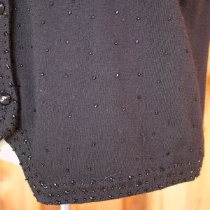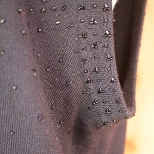Great condition vintage 100% wool black on black sweater vest with beading detail throughout, faceted buttons, and lace... honestly, what more could you want? This is a dream scenario - western dressy vest. Although a few random beads have gone awry, but hardly noticeable; please see last photo. Super soft and ready to layer this fall!