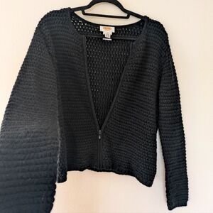 Vintage Talbots 100% Wool Black Open Knit Cardigan sz MP Punk Whimsigoth Basic