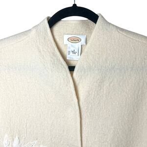 Vintage Talbots 100% Wool Embroidered Floral Cardigan Jacket Ivory Size Small