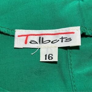 Vintage Talbots 80s Blouse Top Womens Size 16 Green Short Sleeve Shoulder Pads