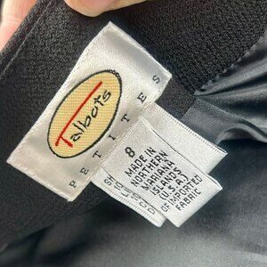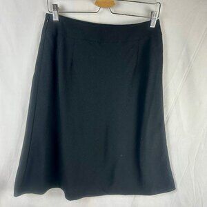Classic black wool skirt from Talbots, designed for a professional look. This knee-length A-line skirt is perfect for a career-focused wardrobe, offering both style and comfort for the petite woman.