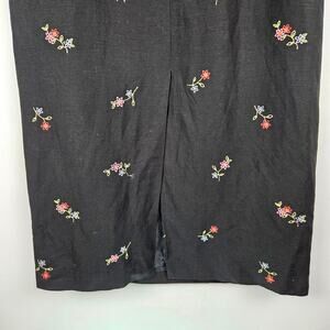 Vintage Talbots Black Linen Blend Floral Embroidered Maxi Dress Size 14 Petite