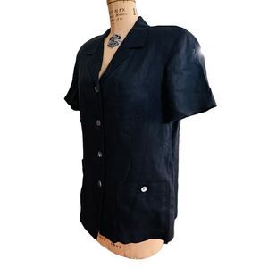 Vintage Y2K Talbots Black Irish Linen Short Sleeved Summer Weight Single Breasted Blazer Jacket Size Large.