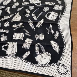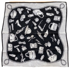 Vintage Talbots Black & White Silk Scarf Shopping Motif Neckerchief Monochrome