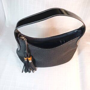 Vintage Talbots Black Wicket Basket Weave Bamboo Tassel Hobo Shoulder Bag