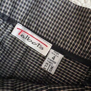 Vintage Talbots Black/Gray/Gold Micro Plaid A-Line Silk Blend Skirt sz 4