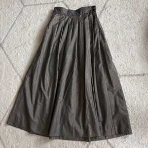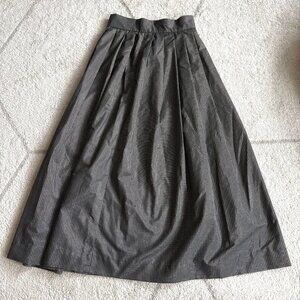 Classic and elegant, this vintage Talbots pleated maxi skirt is a timeless wardrobe piece. Made in the USA from imported fabric, it features a sophisticated black-and-gold micro check pattern that shimmers subtly under the light. The full pleated silhouette gives it beautiful movement, perfect for both day and evening wear.