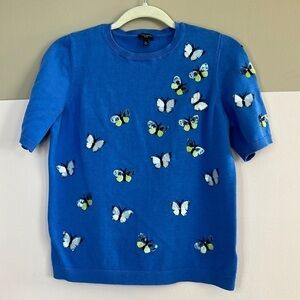 Vintage Talbots Blue Sequined Butterfly Butterflies Sweater L Petite