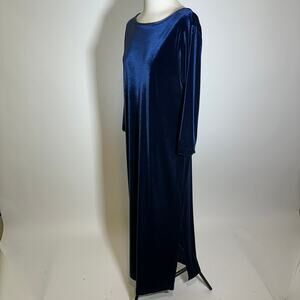 Vintage Talbots Blue Velvet 3/4 Sleeve Maxi Dress VTG Goth