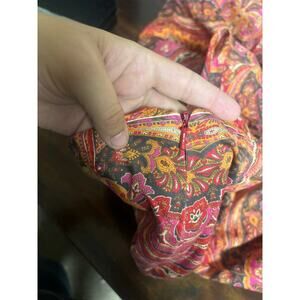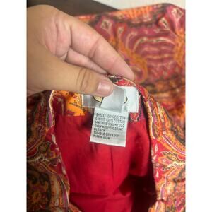 This vintage Talbots skirt in size 4 features a stunning boho paisley print in warm tones of red, orange, pink, and gold. The A-line silhouette gives it a flattering, classic fit that’s perfect for fall styling. Pair it with a turtleneck and boots for a cozy retro look, or a crisp blouse for a more polished vintage-inspired outfit. Made with the timeless quality Talbots is known for.