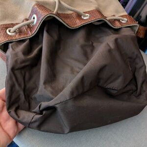 Vintage Talbots Bucket Bag Tan Brown Y2K Handbag Purse Leather Canvas Crossbody