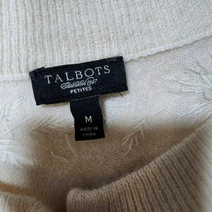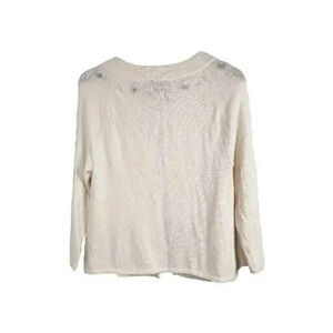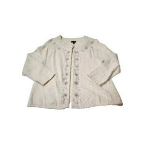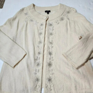 Vintage Talbots Cardigan Women Medium Beige Silver Flow Embellish Formal Retro