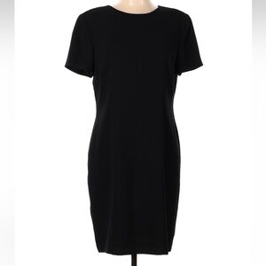 Vintage Talbots Classic Black Career Midi Dress Short Sleeve Crew Neck Size 12 L
