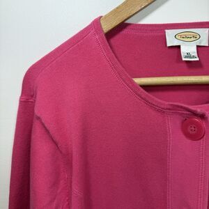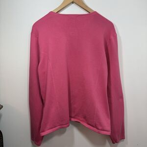 Vintage Talbots Cotton Sweater XL Womens Pink Cardigan Button Up Pockets Stretch