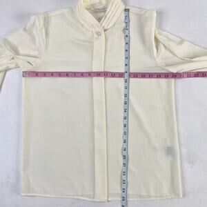 Vintage Talbots Cream Drapey Mandarin Band Collar Blouse Sz Medium
