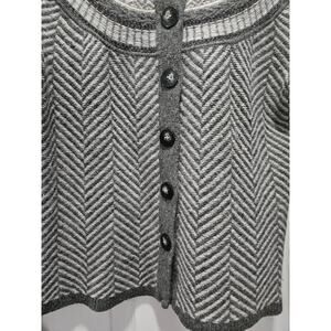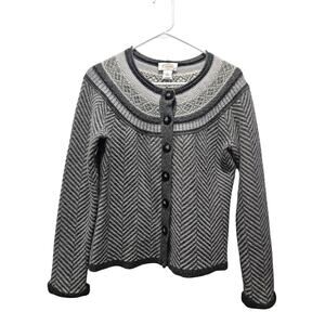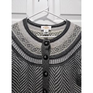 Vintage Talbots Fair Isle Cardigan Sweater Gray Size S Lambs Wool Angora Rabbit