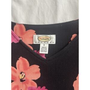 Vintage Talbots Floral Sheath Midi Dress Womens SIze SP Black Pink Classic