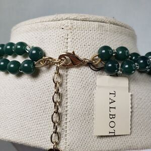 Vintage Talbots Green Bead Rhinestone Ball Two Strand 26" Necklace NWT