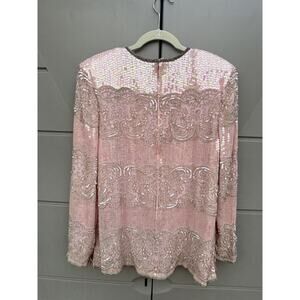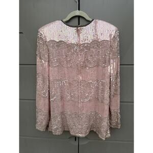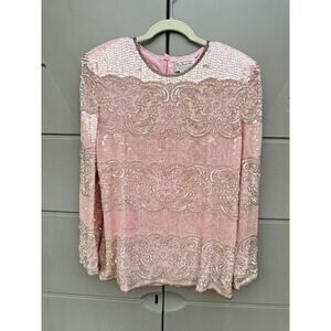 Vintage Talbots Joan Leslie Womens Pink All Over Sequin Beaded Silk Blouse Sz L