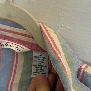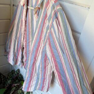 Good condition. Just needs a steam/iron. Size medium but I think it best would fit an oversized small. Cotton and linen. Striped.