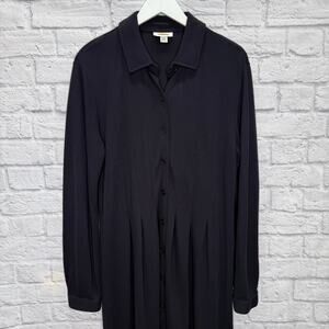 Vintage Talbots Long Sleeve Dress Size L Navy Blue Pleated Modest Button Front
