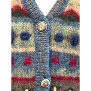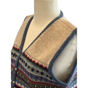 Vintage Talbots Medium Blue 100% Wool Fair Isle Stripe V-Neck Sweater Vest