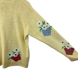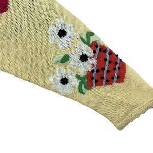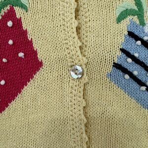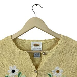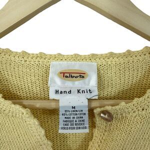 Vintage Talbots Medium Hand Knit Sweater Cardigan Linen Cotton Womens Long Sleeve Pale Yellow Shell Buttons