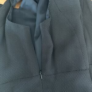 * Features: hidden side zipper, short flutter sleeves, micro (very tiny) polka dot design