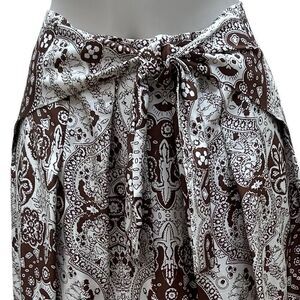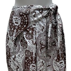 Vintage Talbots Midi Skirt Womens Size 12 Brown & White Paisley Wrap A-line Silk