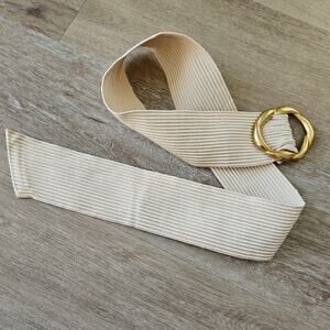 Vintage Talbots Off White Cream Belt Matte Gold Tone Round Buckle Large Casual