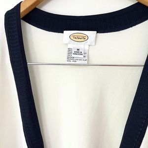 Vintage Talbots Open Front Cardigan Sweater Size M Blue Cream Nautical Preppy