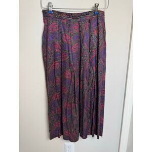 Vintage Talbots Petite Size 6 Purple Paisley Skirt Pink Teal Made in USA Rayon