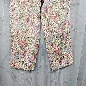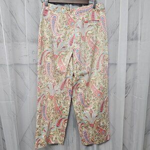 Vintage Talbots Pink Cream Paisley Boho Cropped Straight Leg Chino Pants Size