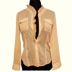 Vintage Talbots Semi Sheer Peach Ruffled Button Front