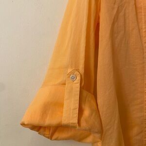 Vintage Talbots Semi Sheer Blouse Peach Ruffled Button Front Cotton Top Size 14