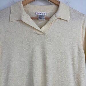 Vintage Talbots Short Sleeve Sweater M Polo Butter Yellow Tennis Country Club