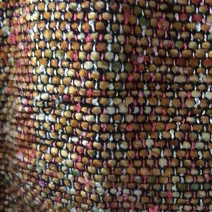 Beautiful mix of orange, brown and red. The exterior is made of 75% silk and 25% rayon. The buttons look like little flowers with a gem in the middle. Please see photos for measurements.