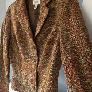 Vintage Talbots Silk Blend Blazer Jacket Orange Red Brown Women's Size 8