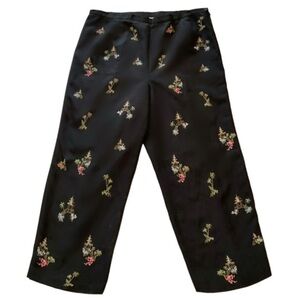 Vintage Talbots Silk Blend Pagoda Palm Tree Embroidered Cropped Pant Trouser