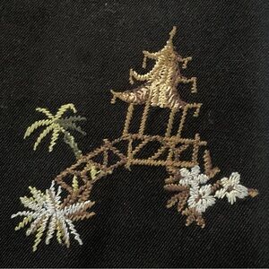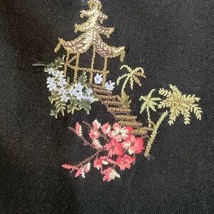 Vintage Talbots Silk Blend Pagoda Palm Tree Embroidered Cropped Pants Asian Style Trouser