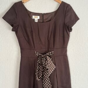 Vintage Talbots Silk Brown Dress Polka Dot Bow Preppy Fall Derby Party Twee Prep