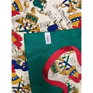 Vintage Talbots Silk Christmas Scarf Bows Horns Drummer Boy Holiday Music