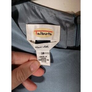 Vintage Talbots Silk Grey Shoulder Pads 80s 90s Zip Embroidered Dress Size 18